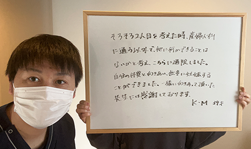 2年程、不妊治療をしていましたが、検査しても原因不明でした。他にできることがないか探して、こちらに通い始めました。